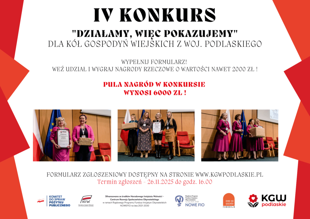 Ogłaszamy konkurs skierowany do KGW z województwa podlaskiego „Działamy, więc pokazujemy”!